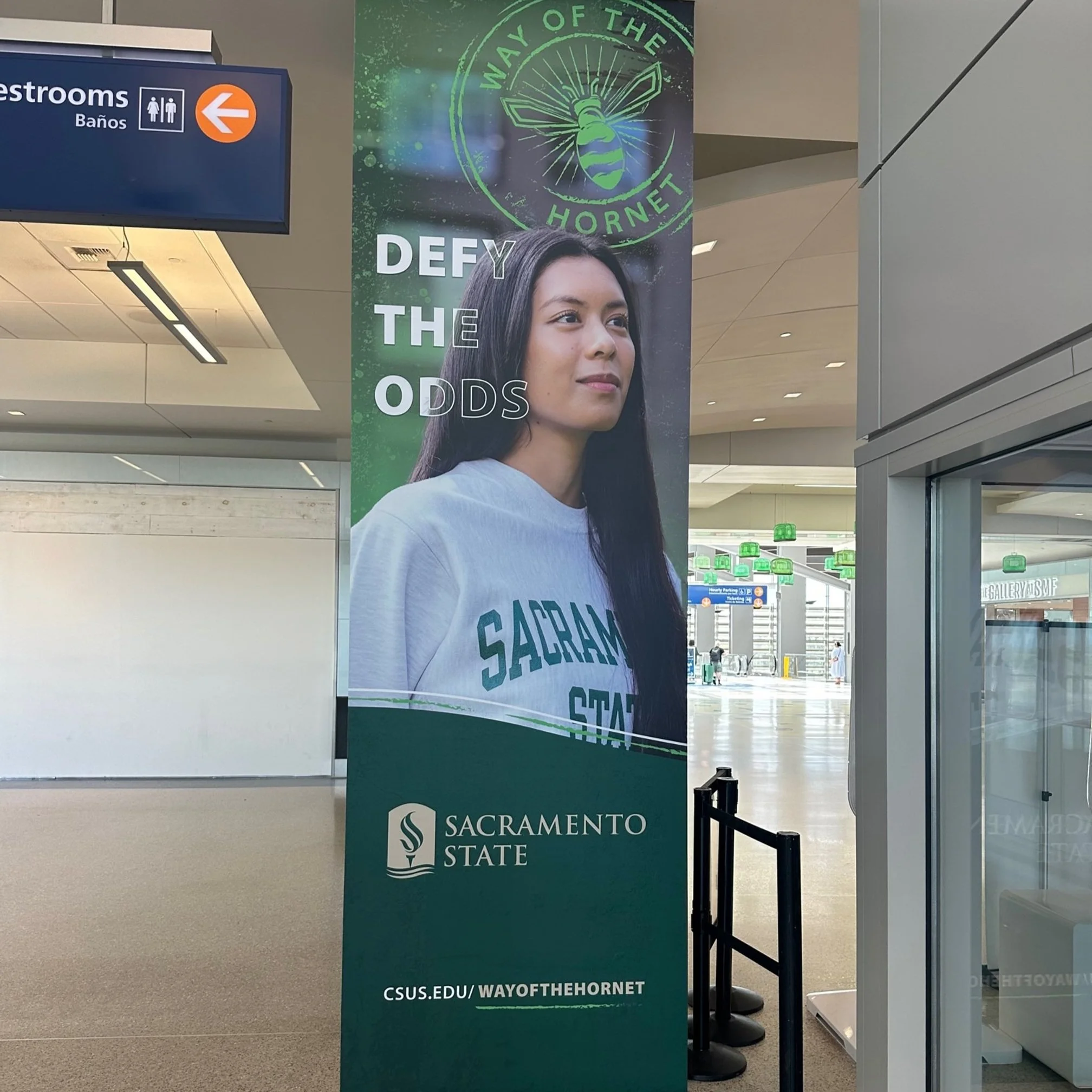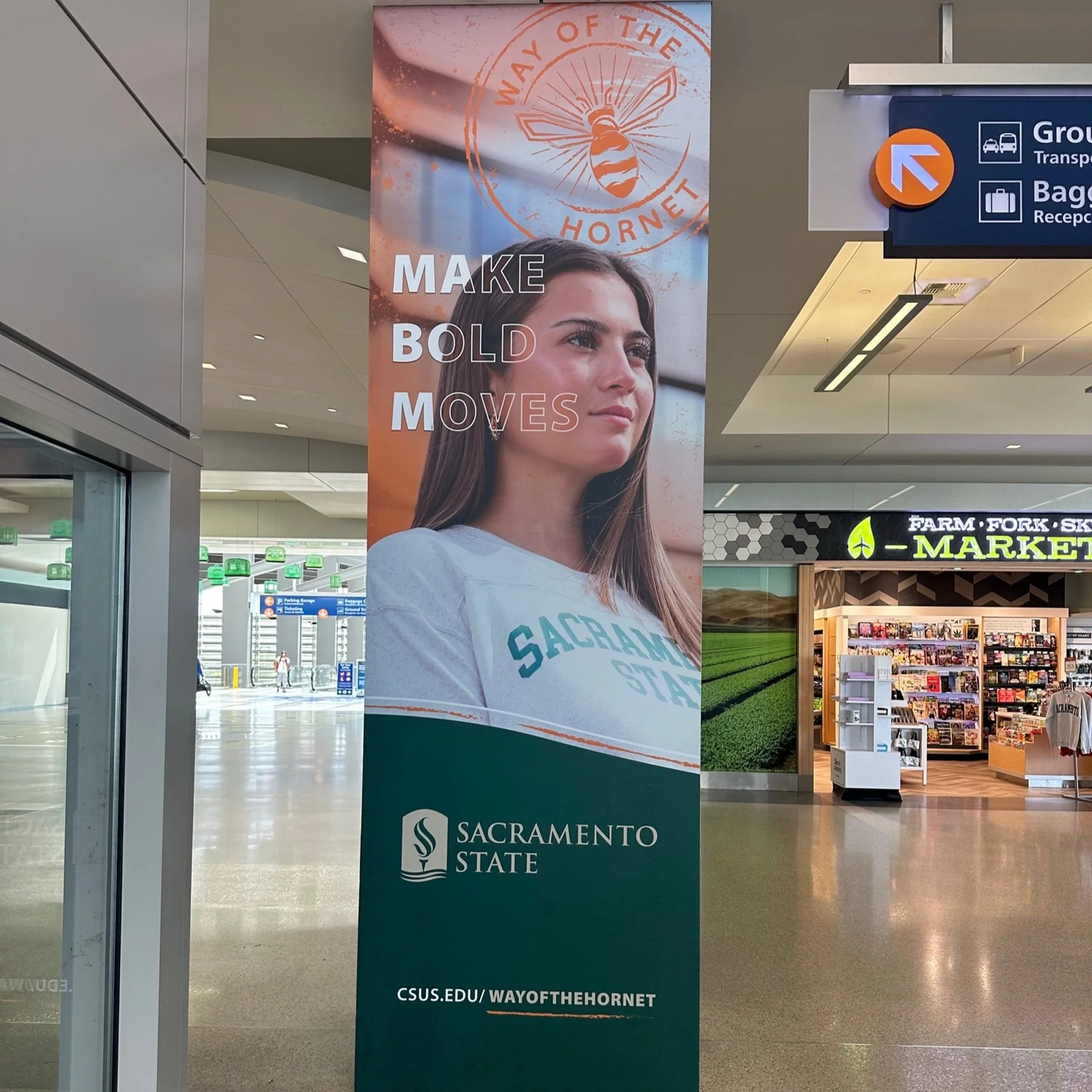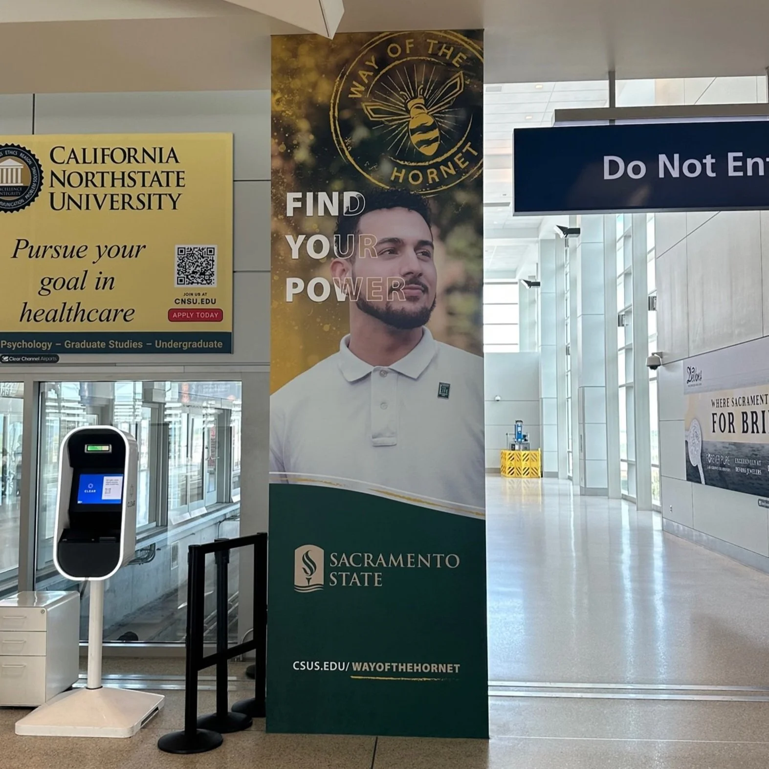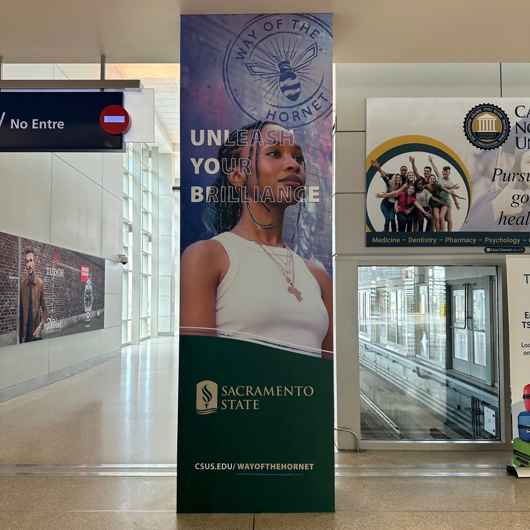 Capitalizing on existing contracts, campaign visuals are prominently displayed on columns in Sacramento International Airport’s Terminal B and screens near Gate B16, reaching a broad audience of travelers and commuters.