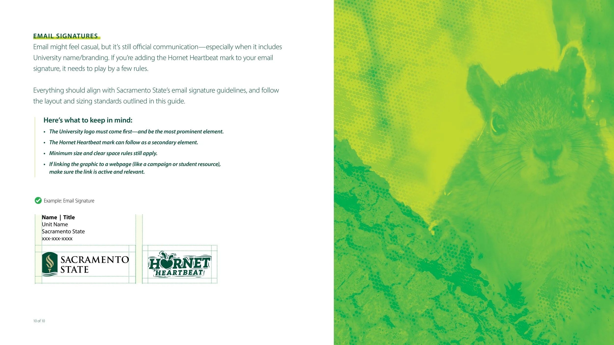 Style guide with sizing, color, and application guidance